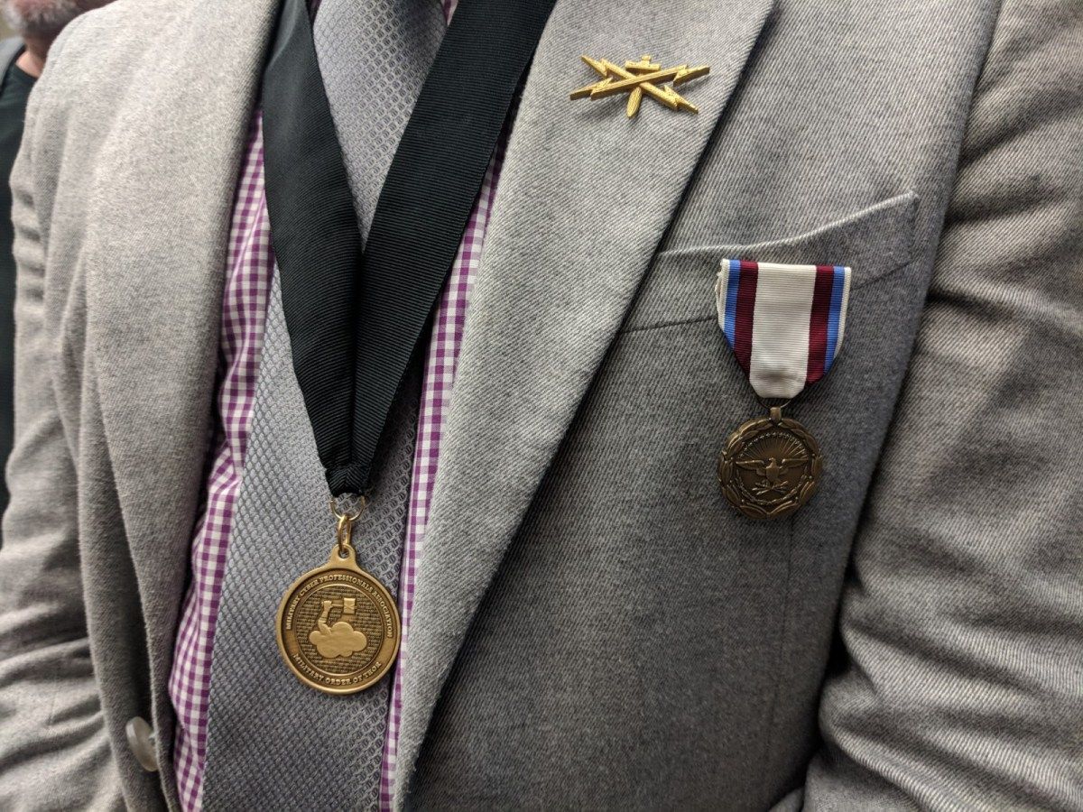 Zatko’s accessorization testified to that spirit of cooperation. He wore two medals to the talk: an Exceptional Public Service medal from the Secretary of Defense and an Order of Thor from the Military Cyber Professionals Association.