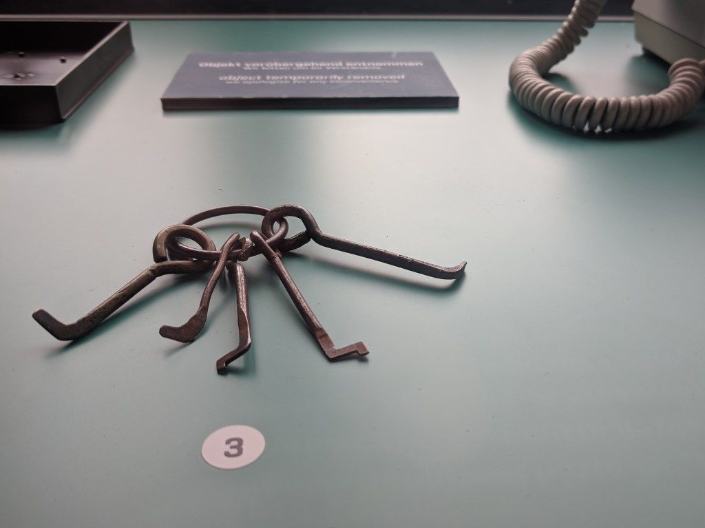 The museum spotlights hardware used to implement this snooping: key-copying kits, lock-picking tools, and voice recorders or cameras hidden in doors, watering cans, ties, shopping bags, belts, or beverage containers.